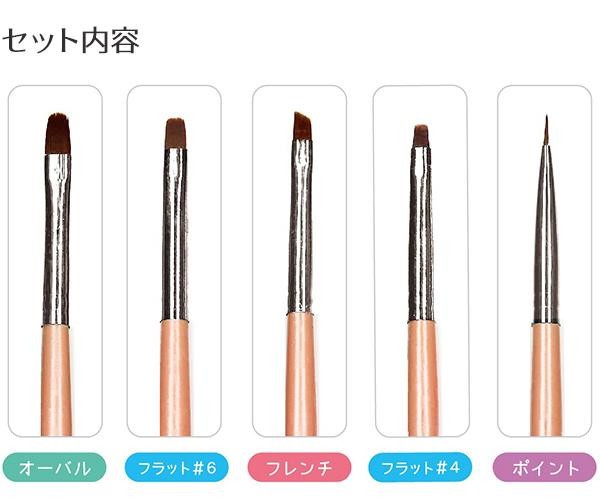 デザインや用途に合わせて使い分けられるブラシのセット。幅広いデザインに対応できるよう、様々な5種類のブラシをセットにしました。ネイルアートを始めてみたい方にもピッタリです♪ |