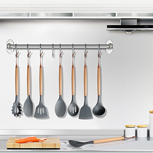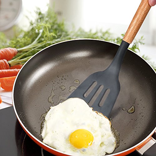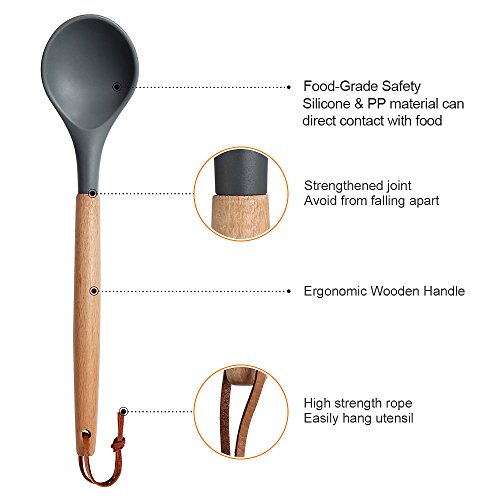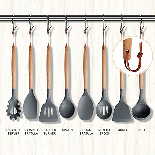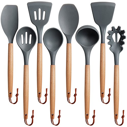 Syntus 8-Piece Kitchen Utensils Silicone Cooking Utensil Set with Beech Wood Handle for Nonstick Cookware