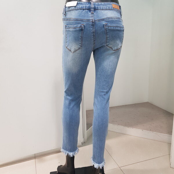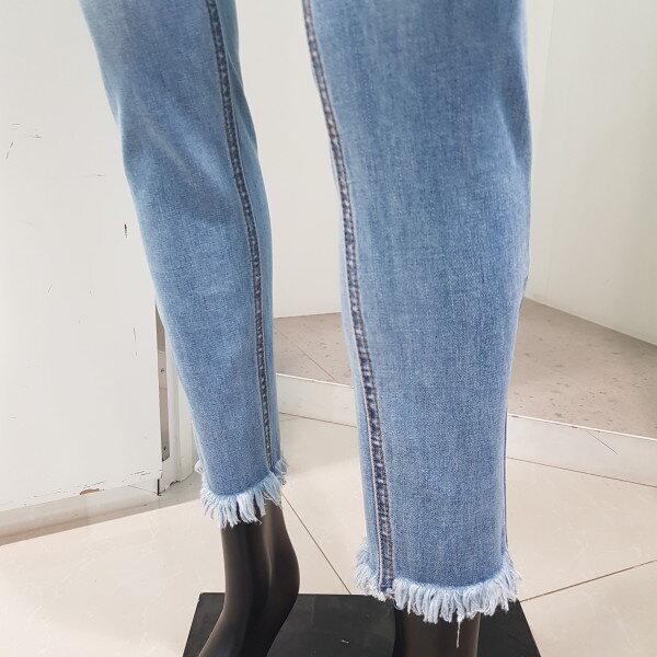 *18 S/S 봄신상.여자 L톤 워싱 미드라이즈 크롭 스키니핏 데님팬츠 입니다. 허리에서부터 밑단까지 다리라인이 그대로 드러나는 실루엣은 스키니핏과 동일하나 기본 핏 보다는, 크롭의 장점인 짧은 기장감으로 좀 더 스타일리쉬한 연출이 가능합니다. 밑위길이 또한 넉넉하며 전체적으로 스판성이 뛰어나며, 발목아래 과하지 않은 수술이 포인트인 스키니 핏 데님팬츠로 적극추천 드리는 봄신상 제품 입니다.