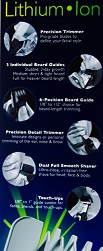 - Includes Li+ trimmer unit, trimmer blade, detail trimmer, T-Blade trimmer, dual foil shaver, 3 beard guide combs, 6-position guide, 3 T-Blade guide combs, charger, beard comb, cleaning brush, blade oil, travel case and instruction/styling guide
