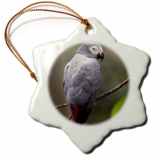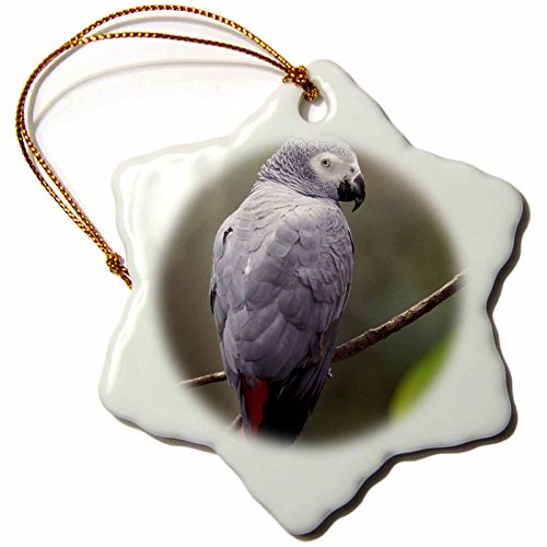 3dRose LLC orn_83574_1 Porcelain Snowflake Ornament, 3-Inch, "African Gray Parrot, Tropical Bird-Adam Jones"