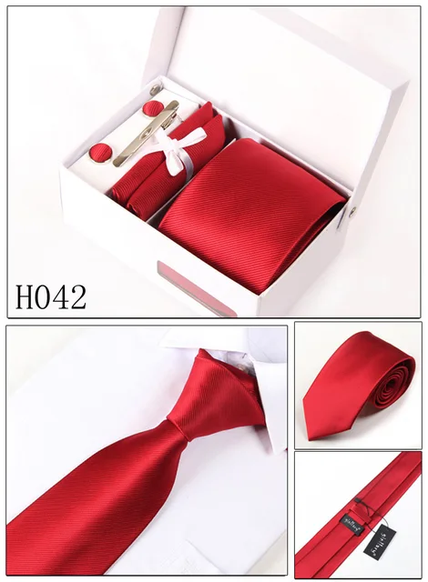 새로운 남자 레드 목에 두르는 남성 mariage 넥타이 실크 솔리드 gravata 정장 비즈니스 kravat 겐트 웨딩 커프스 손수건 목 넥타이 세트