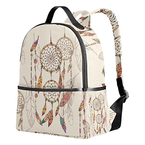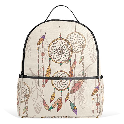-. Title : AURELIOR Bohemian Dream Catcher With Beads And Feathers Print Laptop Backpack Casual Shoulder Daypack for Student School Bag Handbag - Lightweight