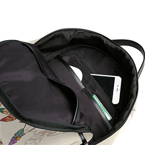 -. Feature : SUPERIOR MATERIAL: Made of high-quality PU leather and polyester fabric, water resistant and durable in use, feel comfortable / OUTER SIZE:12.6 in (L) x 5 in (W) x 14.8 in (H). It's capable of carrying school books and a small-medium sized laptop / GREAT STRUCTURE: A main capacity bag, 2 sided bags, a front zipper pocket, inside have four small receiving bags and a zipper pocket, multi-pocket design / CUSTOMIZED PRINT AND DUAL ZIPPERS DESIGN: Features strong pull tension, high hardness and moves smoothly without sticking.Multiple printed Prints to choose, large capacity to hold your daily supplies, can be used as school bag, travel backpack, casual daypack, etc / UNIQUE DESIGN: The adjustable straps with padding ease the pressure on the shoulder, and the cushion with high permeability material, have never cover sweat when you carry it a long time