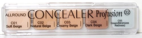 -. Binding : Misc. -. Brand : Profusion -. Color : Green -. EAN : 0801903205963 -. Feature : 5 Color concealer with different shade for all skin type. / Mix and match these colors to get the perfect match for your skin and can also be used as a foundation. / CONCEALER COMES WITH THE GREEN CONCEALER WHICH IS USED TO COVER UP AND HELP REDUCE REDNESS ON THE SKIN. HELPS TO COVER PIMPLES, RED SPOTS ON THE CHEEKS AND NOSE, ROSACEA AND ANY OTHER RED SPOTS OR MARKINGS. -. ProductGroup : Beauty -. ProductTypeName : BEAUTY -. Title : New 5 Color Professional Makeup Camouflage Concealer Palette GREEN Corrector -. UPC : 801903205963