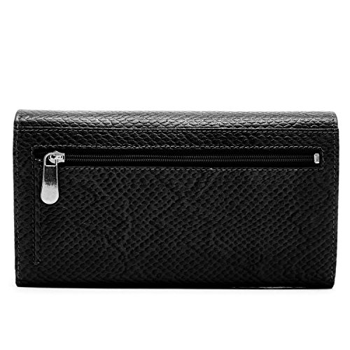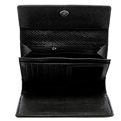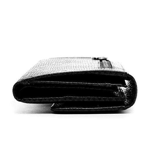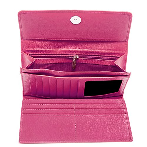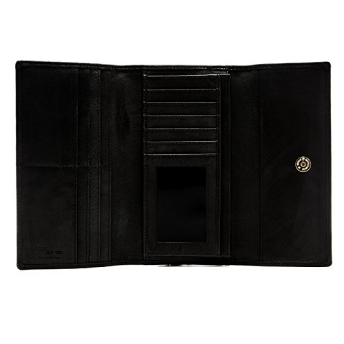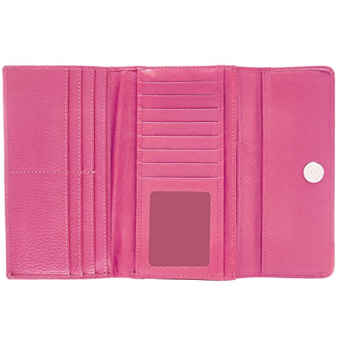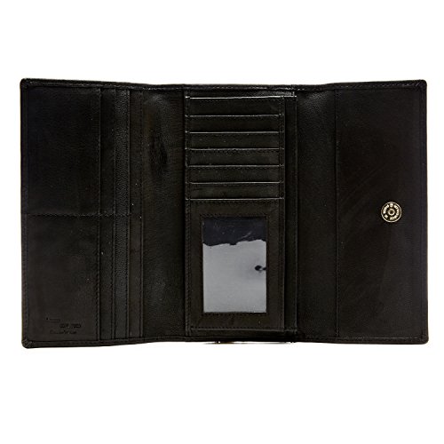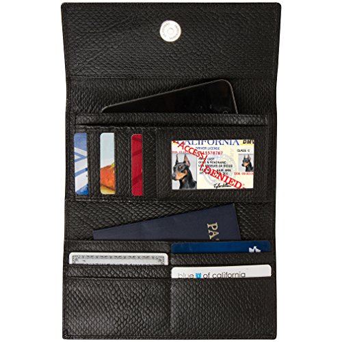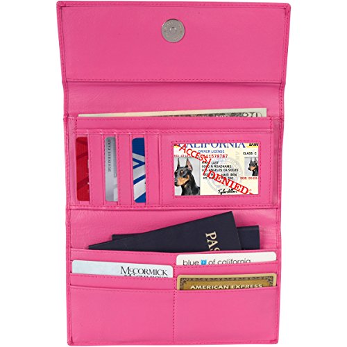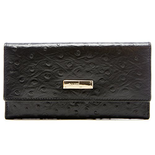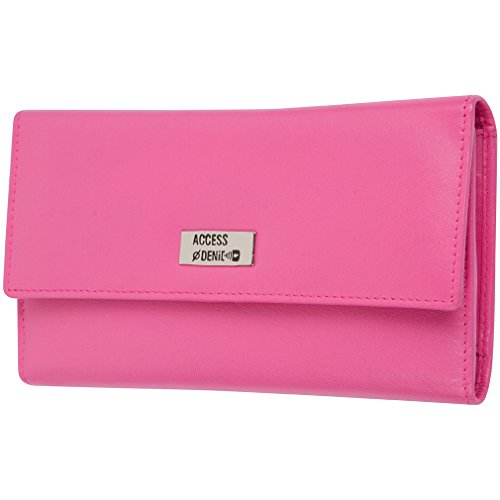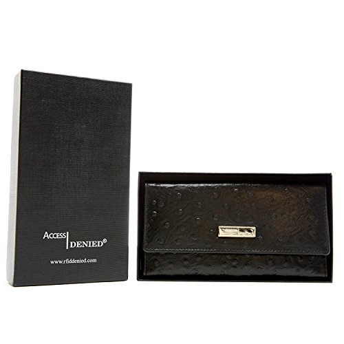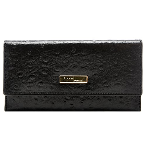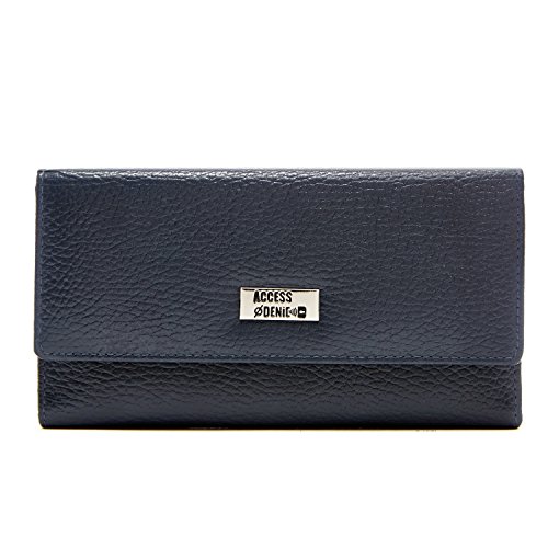 Binding : Apparel Product Description Each Access Denied women's wallet is RFID shielded in and around all pockets and folds. Prevent thieves from remotely accessing (skimming) and reading your credit card account numbers and related private information. Don't become a victim of the silent crime of Electronic Pick Pocketing. Protect and lock your RFID chip enhanced drivers license, gift cards, credit cards, security cards and information safely and securely within our RFID blocking technology. Prevent and protect your identity from electronic pick pocketing. Access Denied Women's RFID Blocking Wallet Trifold Leather Clutch Organizer features 11 credit card slots, ID window pocket, currency pocket, outside zip pocket,checkbook pocket, interior zippered pocket and magnetic snap closure completes this multipurpose organizer clutch wallet. Every pocket and fold of this walled is lined with our proprietary RFID blocking technology so any pocket will safely and securely protect all your cards from electronic pick pocketing. Everyone should own a RFID protection wallet. Wallet arrives packaged in elegant gift box perfect for any occasion. Many color options to choose from, Silver-tone hardware. Length: 7.25 inches Width: 4.25 inches Depth: 1 inch. Visit our Amazon Access Denied store to see our complete line of RFID Blocking protection wallets for men and women. Access Denied is a registered trademark. Founded in 2008, Access Denied is a Woman Veteran owned company. Located in California we are in the epicenter of technology and dedicated to designing quality products that provide a true solution for protecting your personal information from Identity Theft 0
