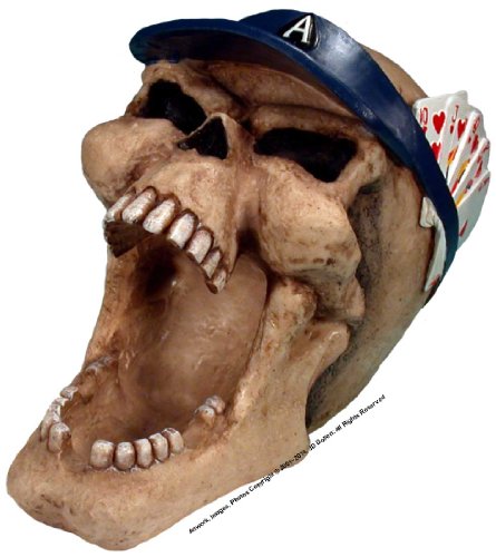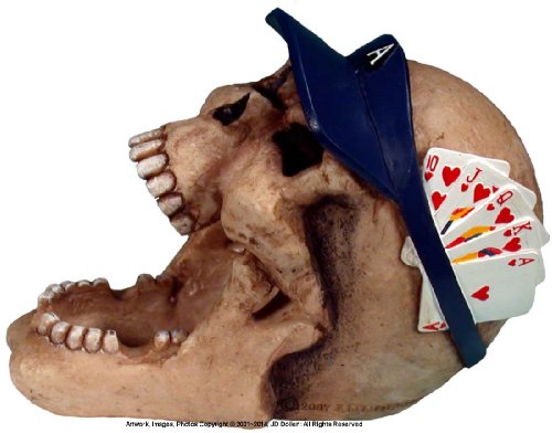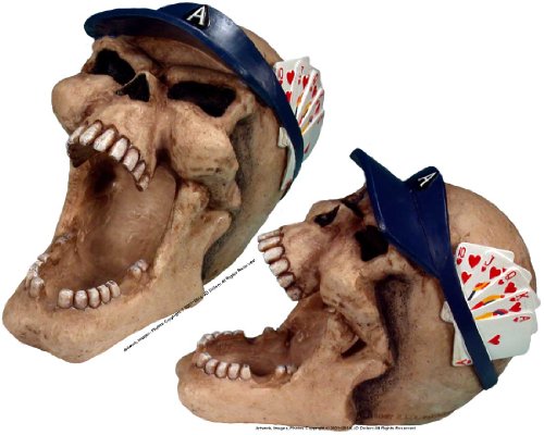 Studio : JC Crafts Publisher : JC Crafts Binding : Kitchen Product Description Poker Playing Human Skull Card Dealer - Open Mouth - Dimensions: 4-H x 5.25-L x 3-W, featuring superb hand crafted and painted details. In the style of a Human Skull replica: an Artistic version of a Poker Playing Human Skull Card Dealer beautifully sculpted, made of durable polystone resin with superb hand-painted details, individually hand-crafted by our highly skilled craftsmen. Our Poker Playing Human Skull Card Dealer features functional an area for storage stashing your favorite goodies, to hold small candy, coin change, jewelry, or ashtray. This Poker Playing Human Skull Card Dealer has many uses such as home decor decorative statuary, contemporary figurine or statuary, or as an interesting conversation piece. No two pieces are exactly the same, each one is unique, individually hand crafted by our individual artisans' and there will be color, detail and tonal variations in each one we handcraft. We produce high quality at an affordable and reasonable price in fantasy human skull replicas, Awesome Design and details! New in Box safe shipping with our Box-in-Box Protection 0