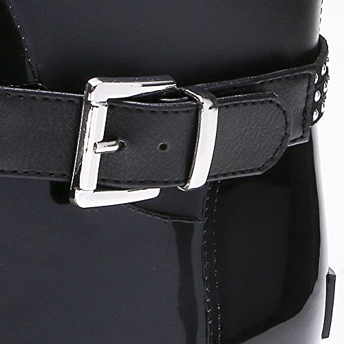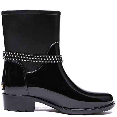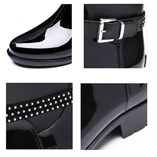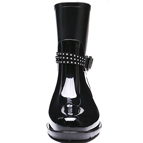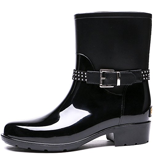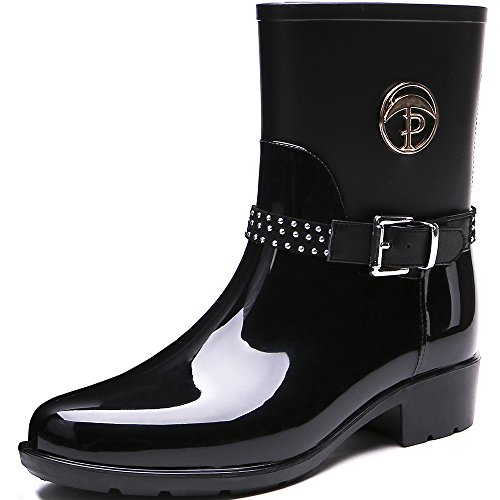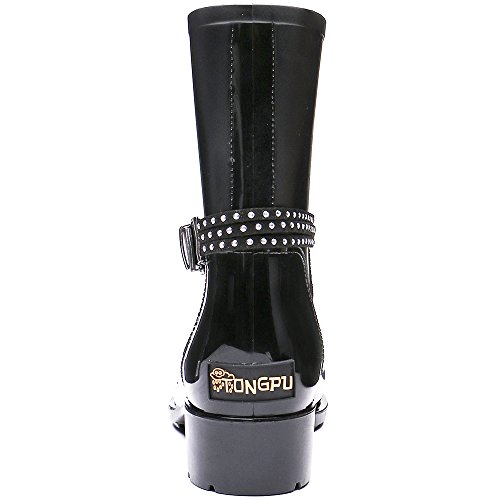 TONGPU Women's Patachwork Rain Footwear Bukle Waterproof Rain Boots