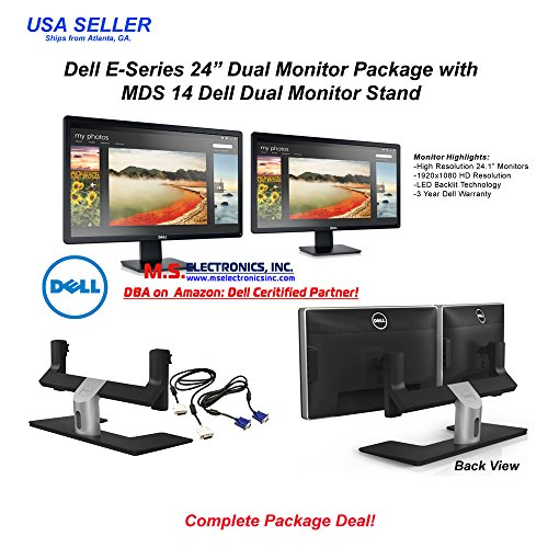 -. Binding : Electronics -. Brand : Dell -. EAN : 9998747477494 -. Feature : Dual Monitor Package with Original Dell Monitor Stand, 2pcs E-Series 24" Monitors / Full HD 1920 x 1080 resolution at 60Hz (max) | LED Back-lighting Technology. | Fast 5 ms response time (typical) | 86% color gamut1 (typical) / Adjustable to your preferred angle with smooth tilt functionality: up to 5° forward or 21° backwards backward) | Monitors are VESA (100mm) Compatible / VGA and DisplayPort Connectivity | Ships with Power & DisplayPort Cables / 3-Year Dell Backed Warranty! -. Label : Dell Computers -. Manufacturer : Dell Computers -. Model : DU24-INCH -. MPN : DU24-INCH -. PackageQuantity : 1 -. PartNumber : DU24-INCH -. ProductGroup : PC Accessory -. ProductTypeName : MONITOR -. Publisher : Dell Computers -. Studio : Dell Computers -. Title : Dell E-Series Dual 24-inch LED Full HD Widescreen Monitor Bundle with MDS-14 Stand