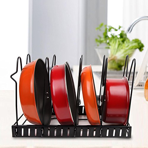 Height Adjustable Pan Organizer Rack, VDOMUS Pan and Pot Lid Holder Black Metal
