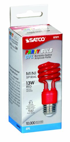 Satco S7271 13 Watt (60 Watt) Mini Spiral Color CFL Light Bulb, Red