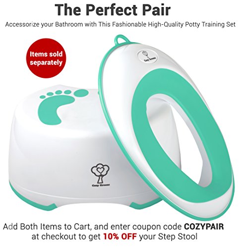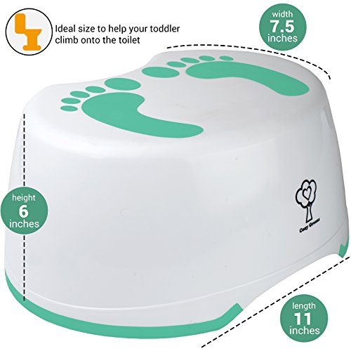 - Feature : CLIMBING WITH CONFIDENCE. Whether your child needs a boost in the bathroom or to "help" in the kitchen, the Cozy Greens® step stool gives them the confidence to do so safely. The GrippySafe Anti-Slip Ring™ prevents shifting and improves your child's stability, while the GrippyGuidance Feet™ give them a playful example of where to step, and eliminates the fear of falling. Our step is the ideal size for helping toddlers climb on to the toilet and measures 6''H x 7"W x 11"L. / BUILT KID TOUGH. Every Cozy Green® bathroom stool is constructed from durable materials meant to last a lifetime. Our lightweight and easy to clean child step stools are award winning in their design, and maximize both safety and comfort. The ergonomic design of the stool will help it to fit around the toilet for use when potty training. AMAZON CUSTOMERS SAY: "My 8 and 6 year old use it and it doesn't buckle or slip under them like cheaper plastic stools we have tried in the past!" / STYLISH DESIGN. As parents, we believe that baby products should be stylish and functional. That is why we designed our children's step stools to fit any bathroom decor. As opposed to other stepping stools used for potty training that get in the way of others using the bathroom, the Cozy Greens® stepping stool for toddlers hugs the toilet, allowing it to be less of a disruption to the flow of your bathroom. When paired with our Potty Ring, you have the perfect toilet training combination. / LIFETIME MONEY-BACK SATISFACTION GUARANTEE. All original Cozy Greens® products come with a LIFETIME guarantee. If you experience ANY problems with your step stool FOR THE LIFETIME OF THE PRODUCT, contact us and we will refund every penny of your purchase, AND ship you a new foot stool FREE of charge. Order your Cozy Greens® step stool today and experience a better way for your little one to climb. AMAZON CUSTOMERS SAY "Kid approved for comfort, parent approved for appearance!" / A PORTION OF COZY GREENS® PROFITS GO TO CHARITY. As a company, it's our mission to create love and happiness in the lives of all we touch. That's why we donate a portion of proceeds from each purchase to Child's Life Chances for Children Charity. By choosing a Cozy Greens® kid step stool, not only are you getting an amazing product at a price you can afford, you are also helping improve the quality of life for other children. Experience the confidence that comes with Cozy Greens®.
