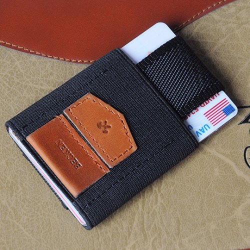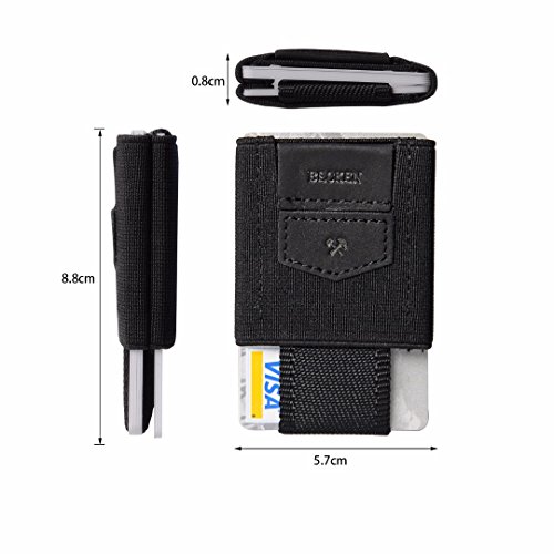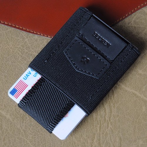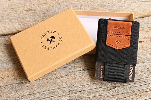 Becken - Slim Leather and Elastic Minimalist Wallet - ID and Credit Card Holder - Holds up to 1...