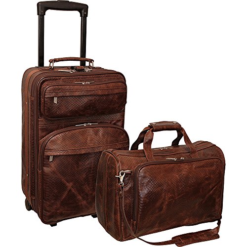 AmeriLeather Brown Python Print Leather Two Piece Set Traveler