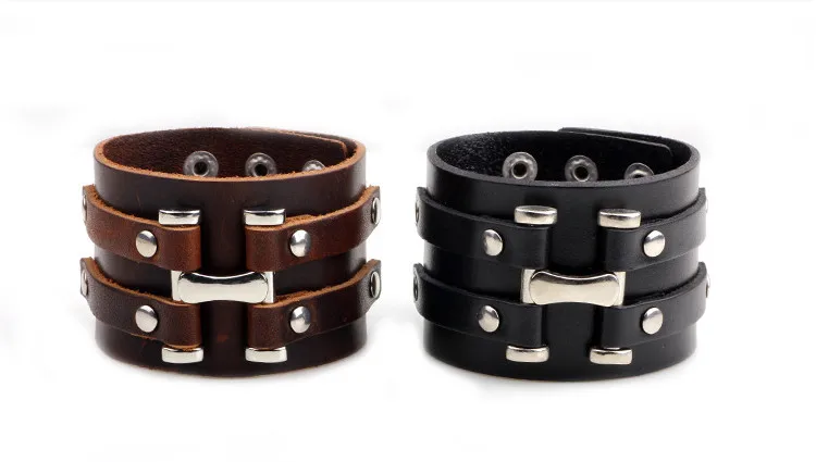 Wide Leather Bracelet:Mens Wide Leather Bracelets