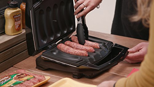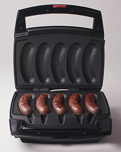 Not just any ordinary grill, the sizzling Sausage grill is designed to capture the juiciness and delicious flavor of Johnsonville brats and Sausage. The team at Johnsonville has created the ultimate 'surround-browning' system with intellisense temperature control: golden Brown, super juicy grilling every time. The uniquely shaped, non stick plates are built to bring you to grilling perfection. Each individual grill slot is sized and shaped to hold and Hug brats and sausages in position while they sear. Brats and sausages won't overcook or dry out because intellisense automatically tests for doneness and will shut the grill off when internal temperature is reached. You can grill an entire tray of Sausage at once, or just one. Because the grill plates molded to hold each Sausage individually, you won't find cold spots or overcooked portions ever. The removable drip tray catches any excess drippings, and cleanup is top notch! the non stick coated drip plates snap out for dishwasher cleaning. Brats and sausages are the perfect protein for meals anytime, and this grill is kitchen counter worthy - from homes to apartments, RV's, and dorms. In less time than firing up the outdoor grill, you'll be enjoying perfectly cooked brats and Sausage at your dining room table. Bonus! with the Johnsonville sizzling Sausage cookbook, you can maximize your meal with dozens of easy recipes! recipes include starters, salads, tailgater favorites and game day winners. Johnsonville brats and sausages create a rich base for soups, entrees and even pizza toppings!Feature