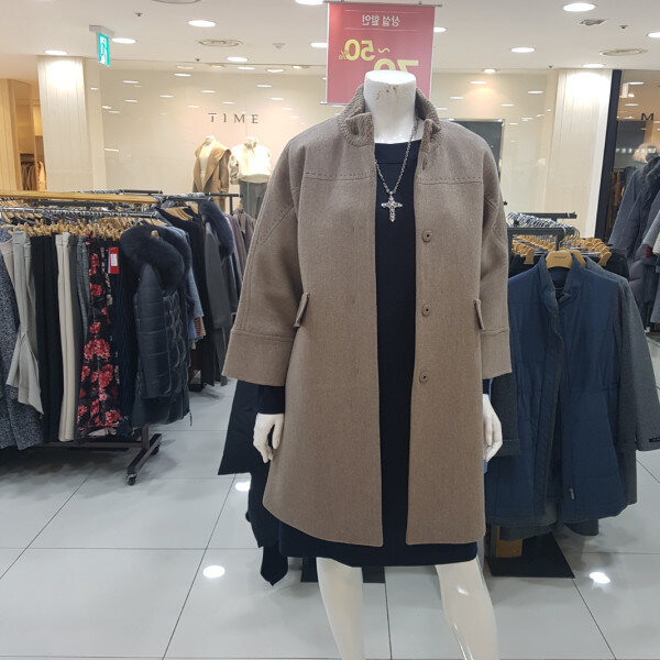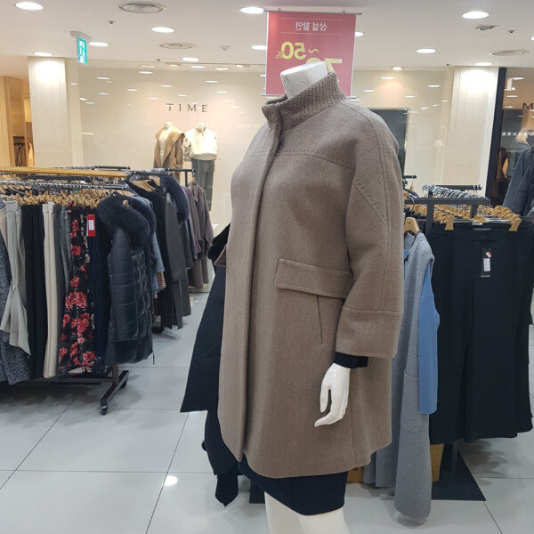 가벼운 모직 코트로 목부분이 니트로 짜임되어있고 팔부분이 편하게 되어있는 캐쥬얼한코트
