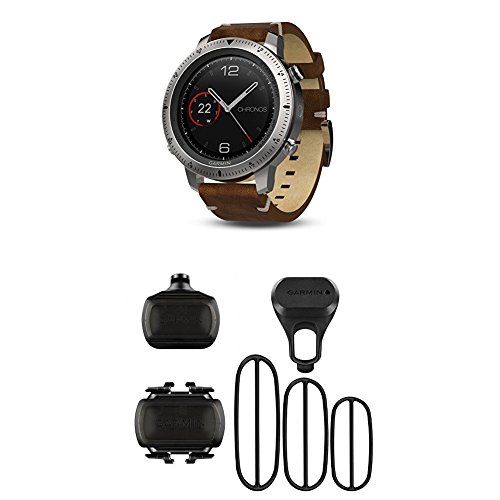 ()/Cycling Wheel Sports/Accessories/DIRECT FROM USA/Garmin Fenix Chronos, Steel with Vintage Leather Watch Band and Bike Speed Sensor and Cadence Sensor