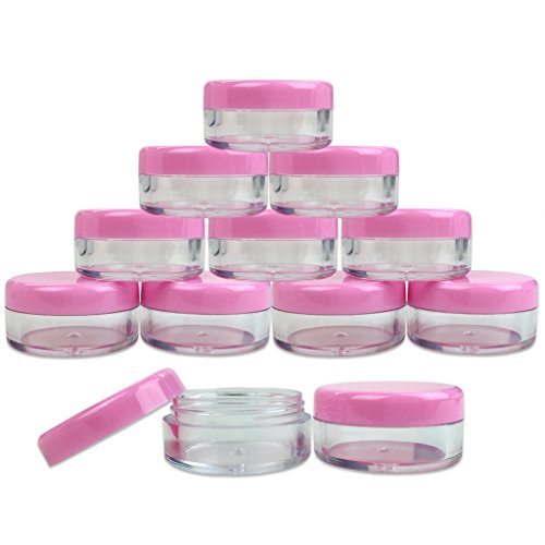 (Quantity: 25 Pcs) Beauticom 5G/5ML Round Clear Jars with Pink Lids for Lotion, Creams, Toners, Lip Balms, Makeup Samples - BPA Free