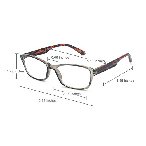 -. Feature : PRODUCTS DIMENSION-Frame material: plastic, Temple Length: 5.62 inches (142mm), Frame Width: 5.33 inches (135mm), Len Width: 2.22 inches (55mm), Len Height: 1.50 inches (38mm), Bridge (DBL): 0.7 inches (18mm), Spring hinge: Yes, Lenses: Aspheric, Head size: Narrow to Medium. Plastic frame / EYE-ZOOM READING GLASSES OPTICAL PERFORMANCE-the deviation for pupil distance(PD) less than 2mm,the deviation for strength less than 0.02,the deviation for lenses's horizontal line less than 1mm / EYE-ZOOM READING GLASSES at Low Price, great for outdoor reading. Classic-shaped frames, look good on any face. spring-hinged temples. help glasses fit your face / QUALITY FRAME - FDA Registered Reading Glasses and Eyewear, Accord with ANSI Z80.3-2010, Accord with BS EN ISO 12312-1:2013 and EN14139:2010, Accord with AS/NZS 1067:2009, Top quality plastic frame, lenses. / 30 DAY MONEY BACK GUARANTEE: In case any broken problem happens, contact the seller of Eye-Zoom Optics Eyewear without hesitation to solve the problem until satisfaction. Eye-Zoom Optics Eyewear provides after sale service for all Eye-Zoom reading glasses. Customers can return and get refunded for any reason. You have no risk to try