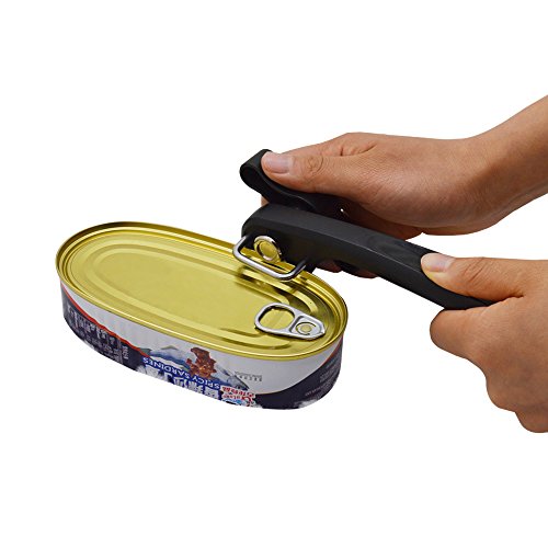 - PERFECT GIFT - This side cutting safety can opener is quite simple to operate. The combination of the big knob, long ergonomic silicon handle, and sharp cutting wheel makes opening cans an effortless task, even for senior citizen with weak hands from arthritis and wrist problems. The opener comes with an amazing FREE BONUS, a bottle opener. Easy to clean, this can opener makes a fantastic present for any occasion Such as Weddings, Christmas gifts,Black Friday,and Housewarming Parties.