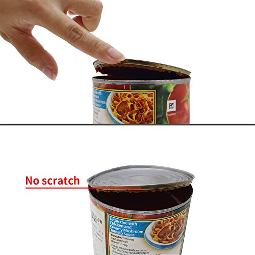 - EXTRA SHARP CUTTING WHEEL - Extremely durable and heavy duty, the stainless steel blade slices through the side of the can in one touch like butter. This manual opener is designed with very strong knife like tooth on the wheels that grips the can tightly and stays sharp for years to come. The exceptionally sharp cutting disc cut the cans with minimal effort and pretty quickly. This kitchen gadget cut the cans lid from the side in a smooth and clean manner without leaving jagged edges.