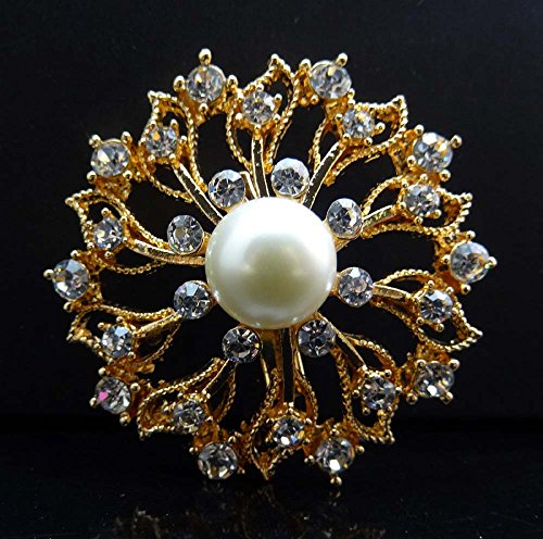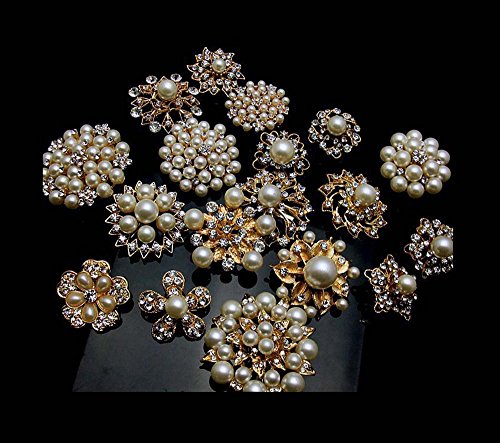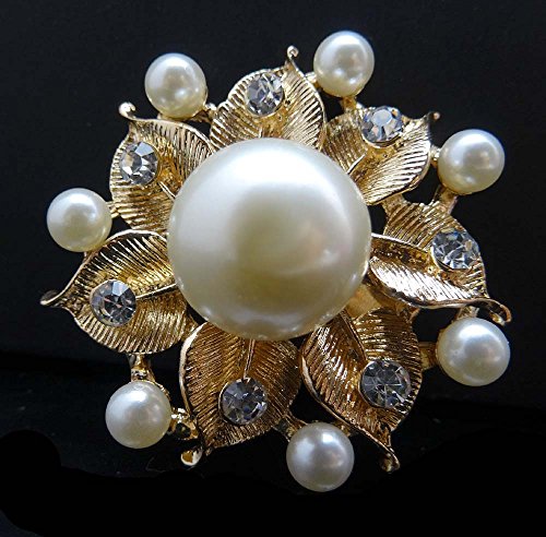 -. Title : L'vow Gold Crystal Pearl Brooches Brooch Pins Wedding Corsage Bouquet Kit Pack of 12