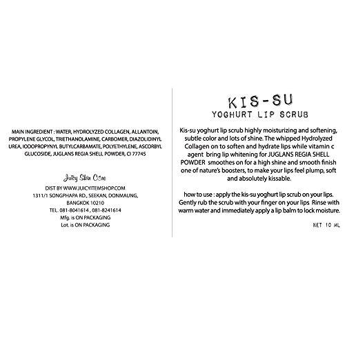 Yoghurt Sugar Lip Balm Scrub Exfoliator Extract Yogurt for dry lip - the Balm treatment with Sugar scruber+Hydrolysed Collagen and Vitamin C( 0.35oz)After use Yoghurt Sugar Lip balm Scrub Exfoliator you will feel not leave that petroleum jelly feeling on your lips.