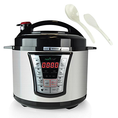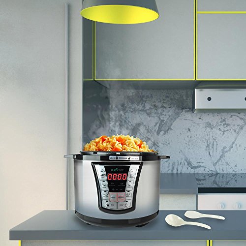 TIME AND ENERGY EFFICIENT: This Electric Pressure Cooker by NutriChef has a pressure safety valve and lock top lid cover for thorough cooking and reduces cooking time by 70% making it highly energy efficient. Has the ability to cook, bake, braise, steam, boil
