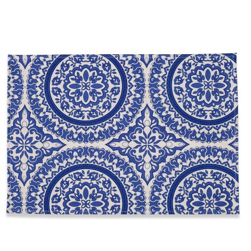 Caravan Collection by Couleur Nature Medallion Placemats, 15-inches by 22-inches, Navy, Set of 4