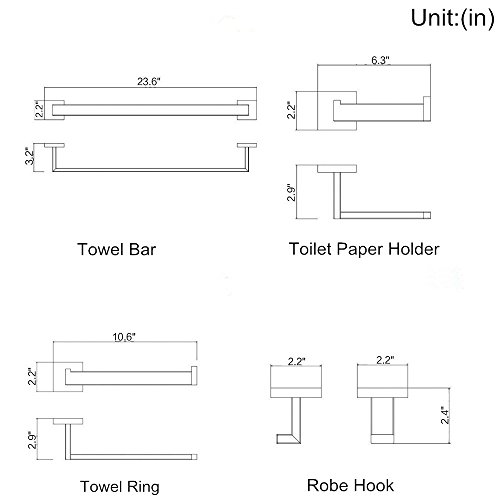 Velimax Premium SUS 304 Stainless Steel Bathroom Hardware Sets 4-Pieces Wall Mount Contemporary Style(Towel Hook Toilet Paper Holder Towel Ring Towel Bar) Polished Finish