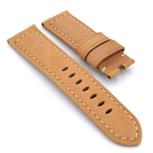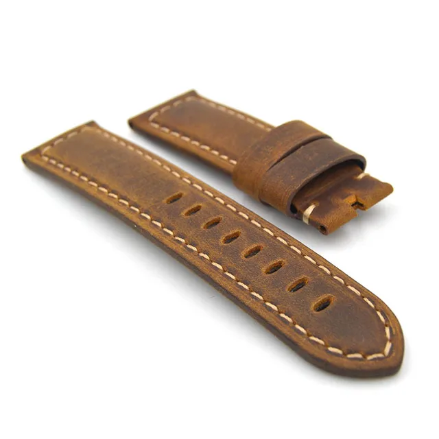 | [해외]남성 브라운 블루 녹색 노란색 스트랩 시계 액세서리, 수제 22 미리메터 24 미리메터 가죽 스트랩 시계 줄 파네, 무료 배송! |