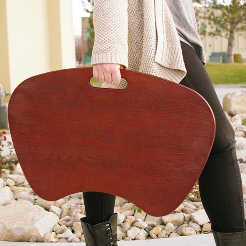 -. Feature : Made from hardwood veneer and stained in a brilliant cherry red / Supports various sizes of the laptop, complete homework or write letters / Micro-fiber padded cushioning supports the chic wood-finish / Retractable slide out compartment for mouse or excess material / Lightweight build design to sustain virtually any kind of working task