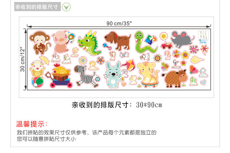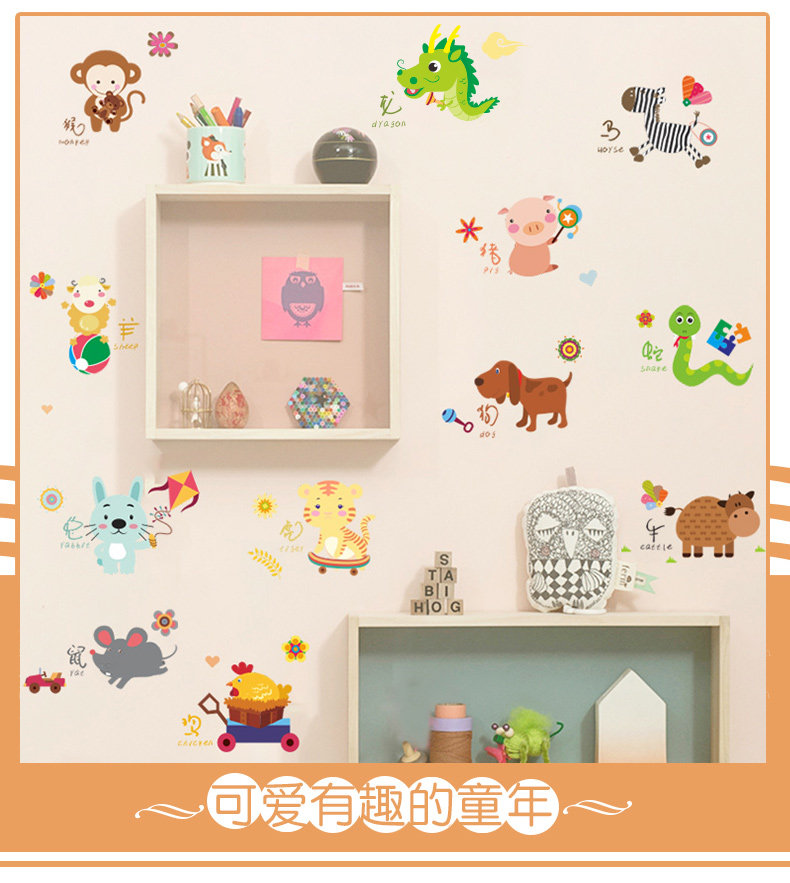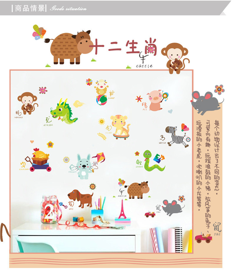 可爱动物十二生肖猴子老虎贴纸儿童房间幼儿园墙面装饰壁纸墙贴