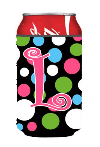 Letter L Initial Monogram - Polkadots and Pink Can or Bottle Beverage Insulator Hugger