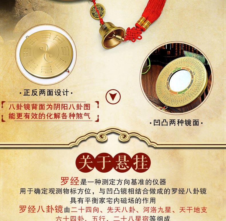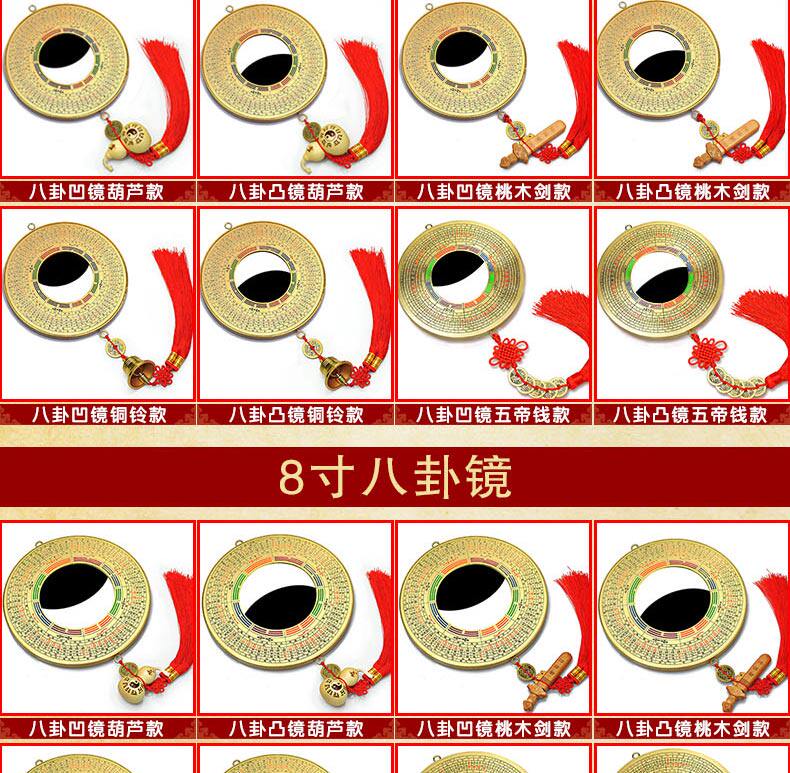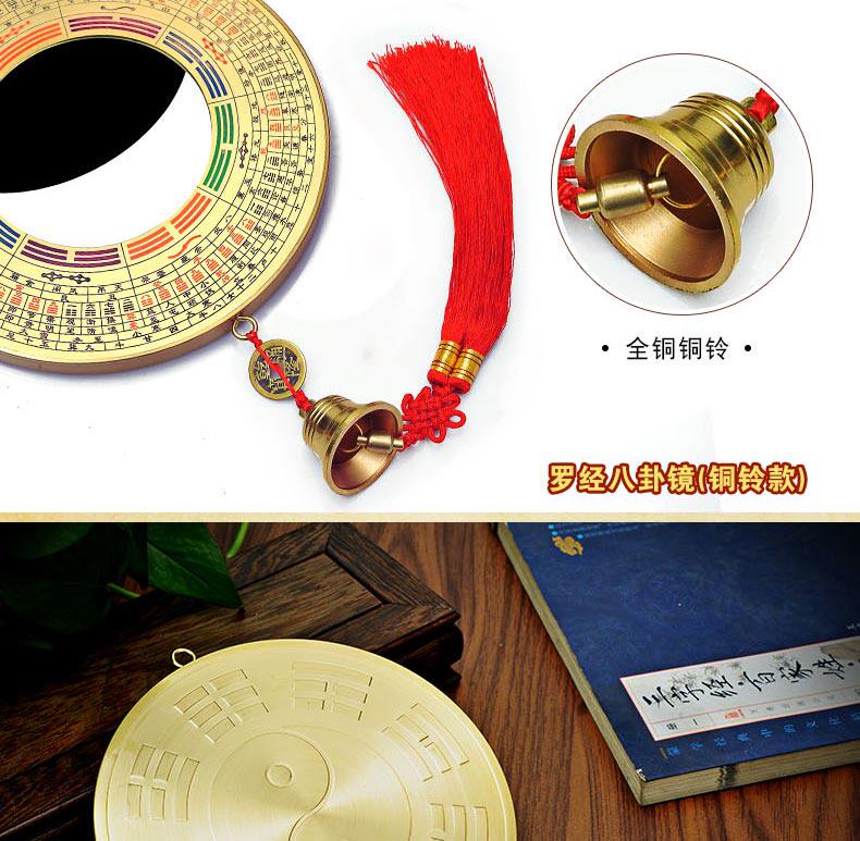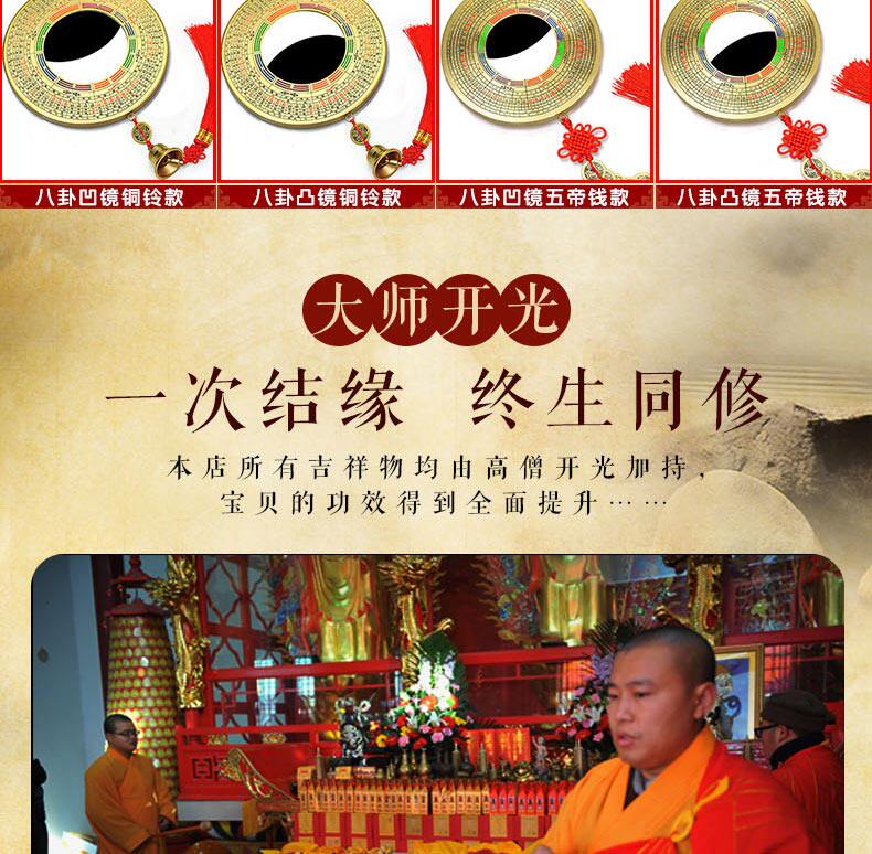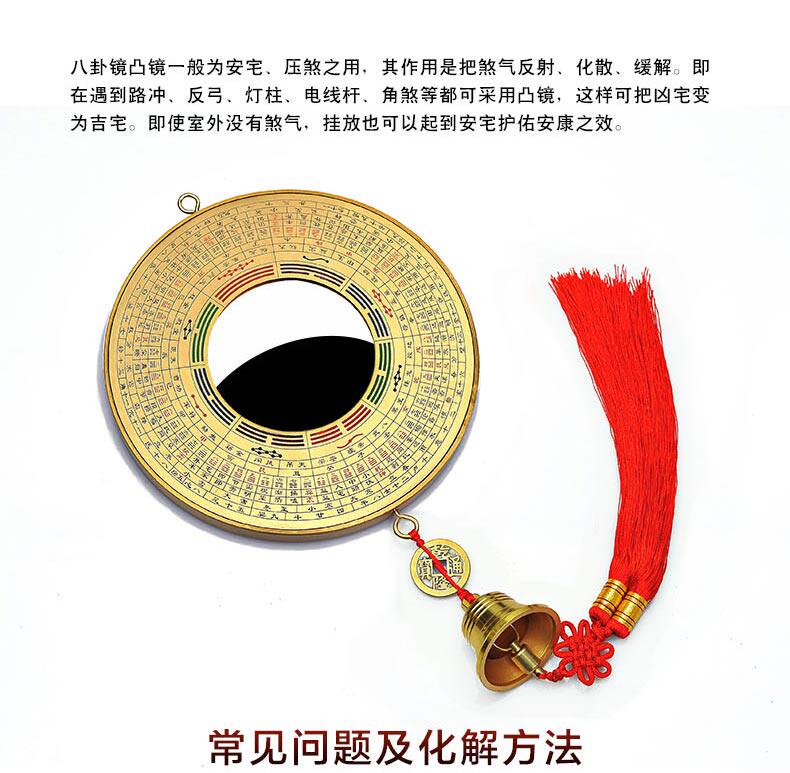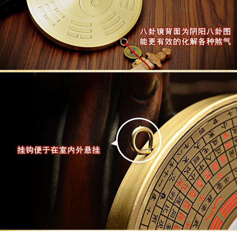 纯铜八卦镜挂件凸镜凹镜九宫罗经八卦镜配五帝钱挂件家居风水挂件