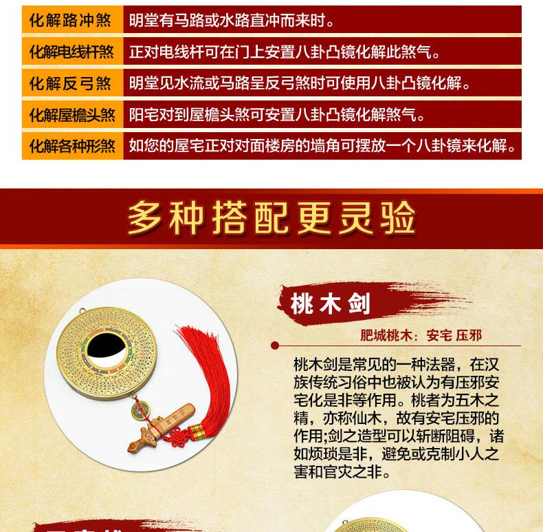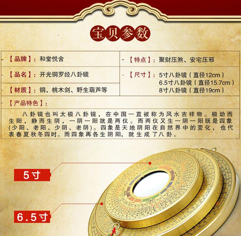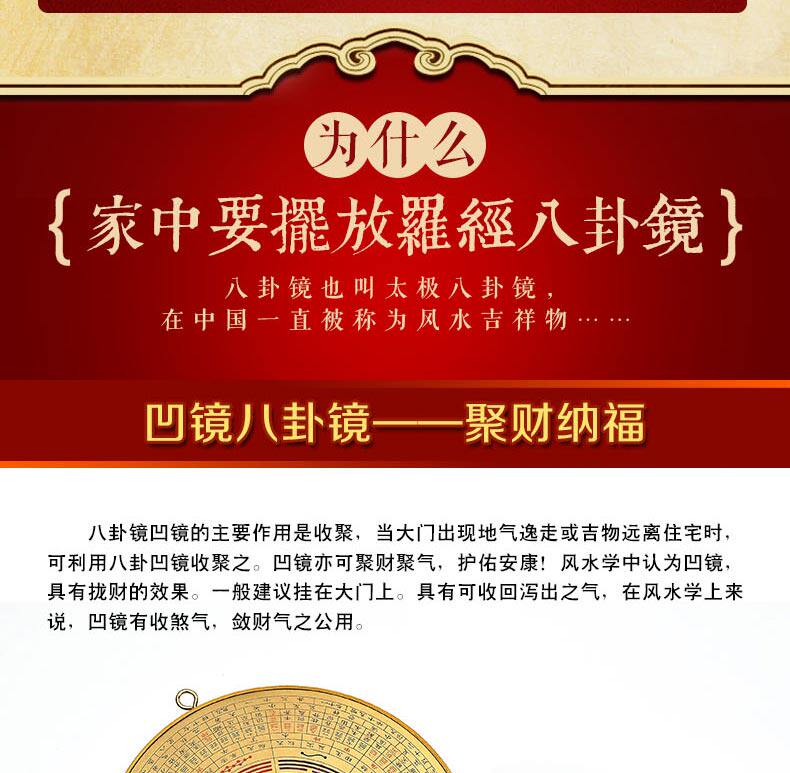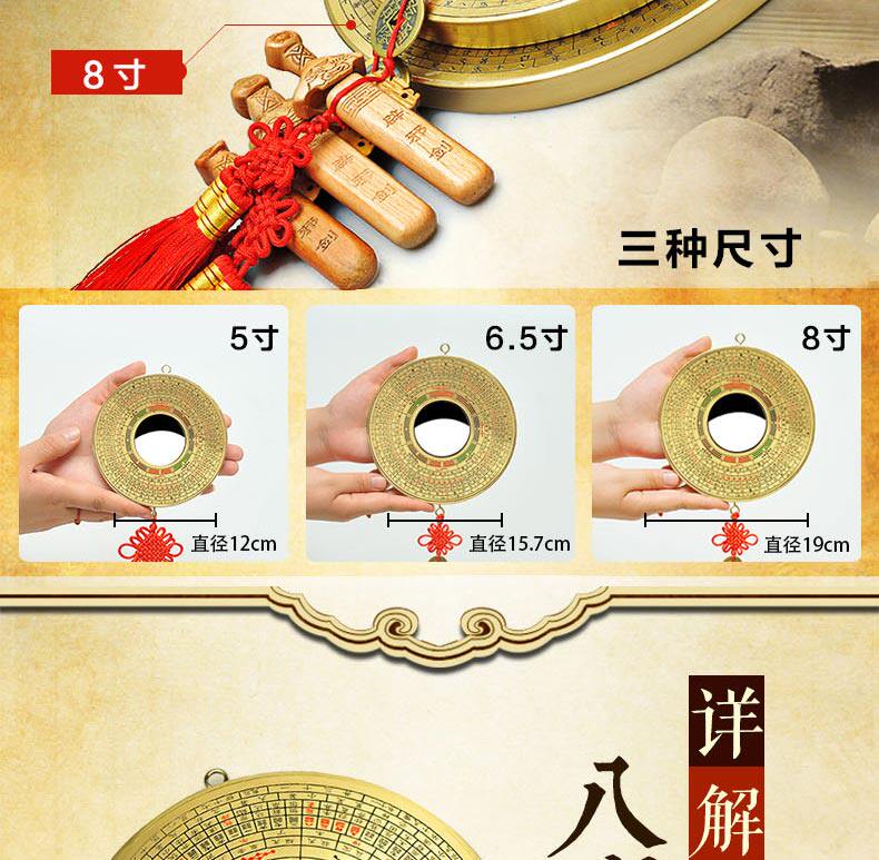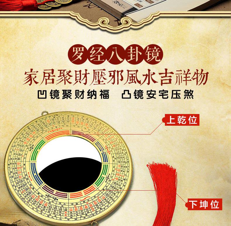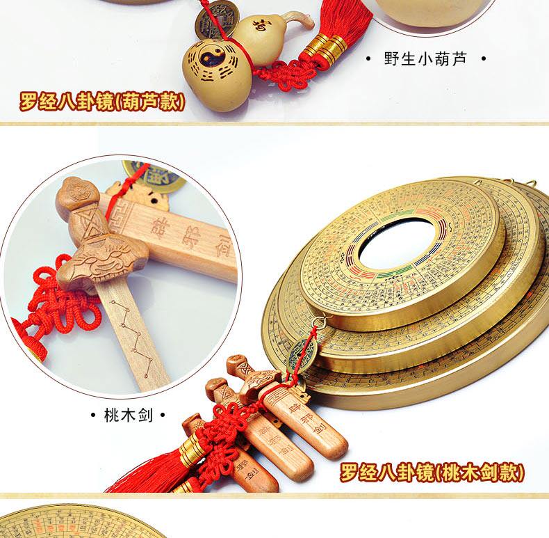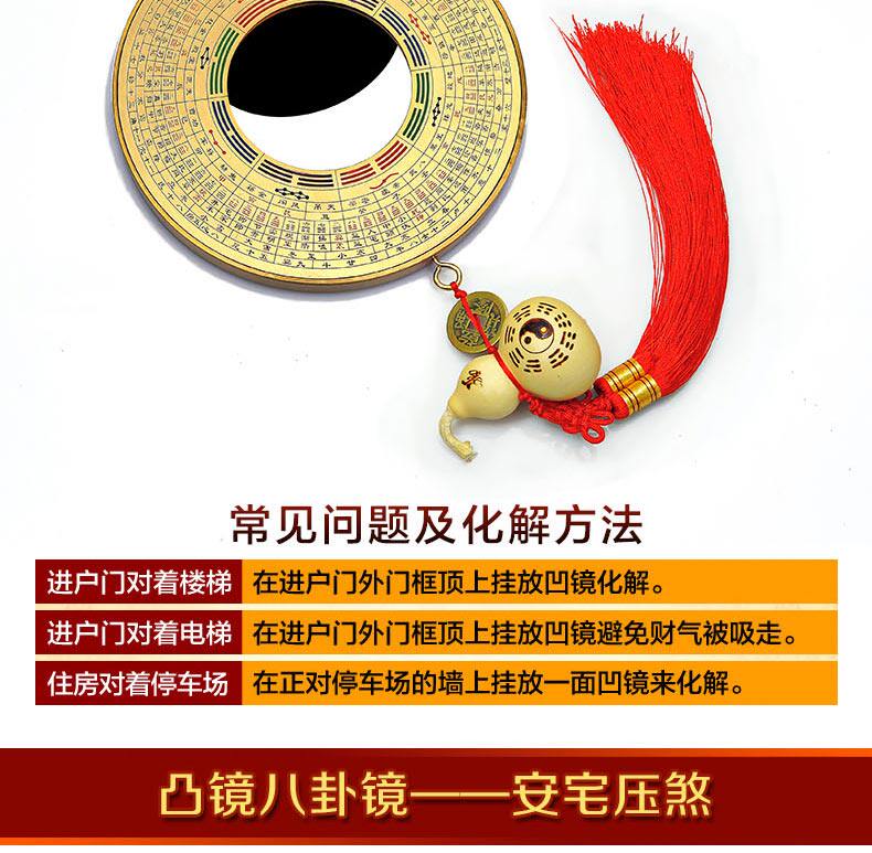 纯铜八卦镜挂件凸镜凹镜九宫罗经八卦镜配五帝钱挂件家居风水挂件