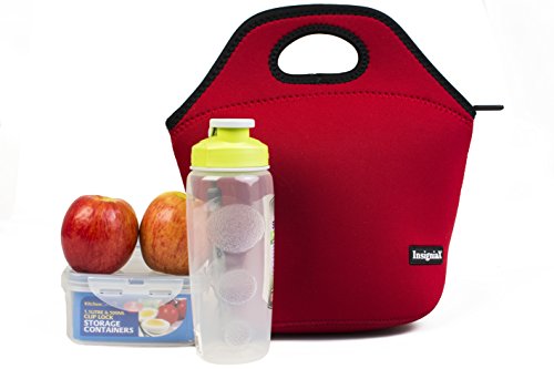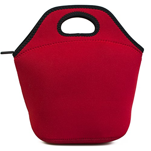 Neoprene Lunch Bag: InsigniaX Stylish Insulated Lunch Tote/Box For Office Adult Men Women Boys Girls With Handle Size H: 11.8" x W: 6.1" x L: 11.5" (Large, Red)