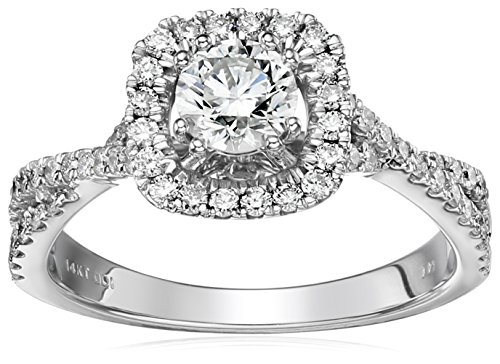 IGI Certified 14k White Gold Diamond Halo Twist Engagement Ring (1 cttw, H-I Color, I1-I2 Clarity), Size 8