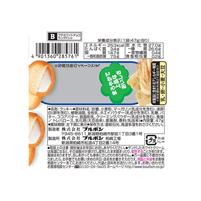 원본상품명: ブルボン プチホワイトチョコラングドシャ 47gx10個