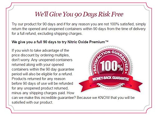 TRY RISK FREE - We're so confident that NITRIC OXIDE Premium will work for you that we are offering a 90 day money back guarantee! So, feel confident that you will lose weight, or get your money back!