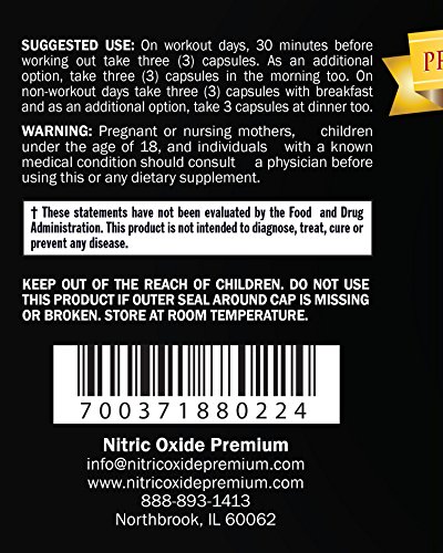 NITRIC OXIDE PREMIUM - Only a high quality product is going to get you the physique you want. Specifically, the most effective Nitric Oxide supplement contains clinically proven nitric oxide boosting ingredients such as L-Arginine (AAKG) and L-Citrulline plus has a synergistic blend of Nitric Oxide boosting ingredients with no additives, preservatives or unrelated ingredients.