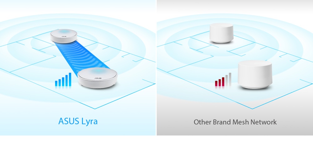 With ASUS Lyra, we've made Wi-Fi simple. Lyra creates a single Wi-Fi network for the entire house, so there's no need to worry about which network to connect to — Lyra does all the complicated work for you. All you have to do is enjoy your seamless Wi-Fi connection!