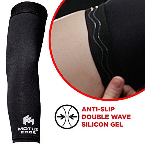 Motus Edge Copper Infused Elbow Compression Sleeve for Tennis Elbow, Tendonitis, CrossFit, Pain Relief