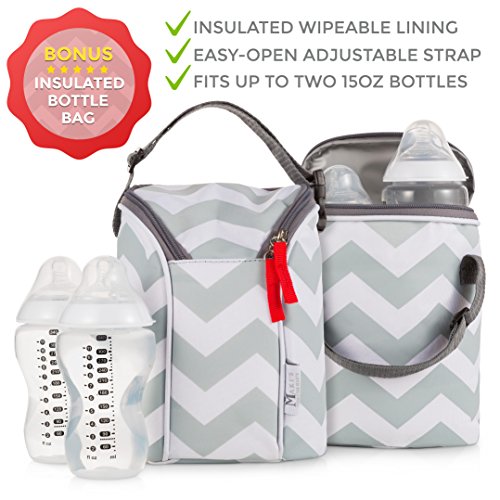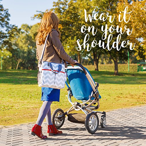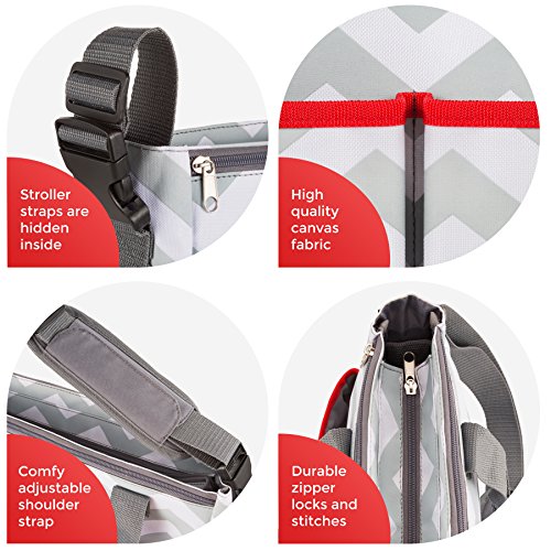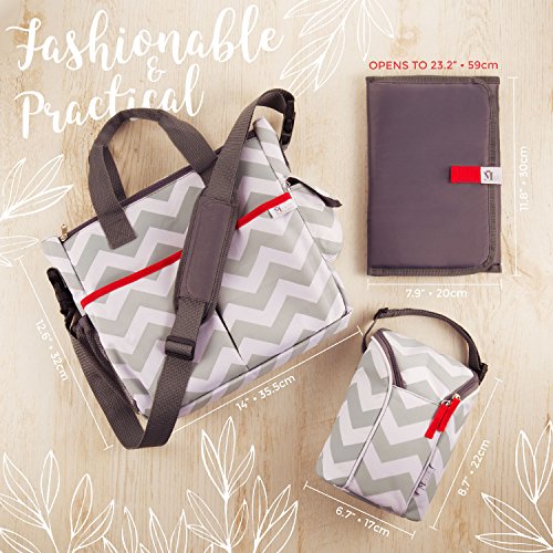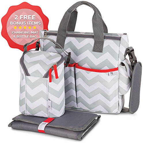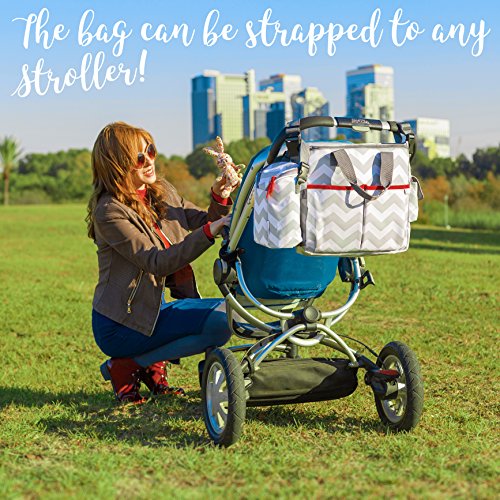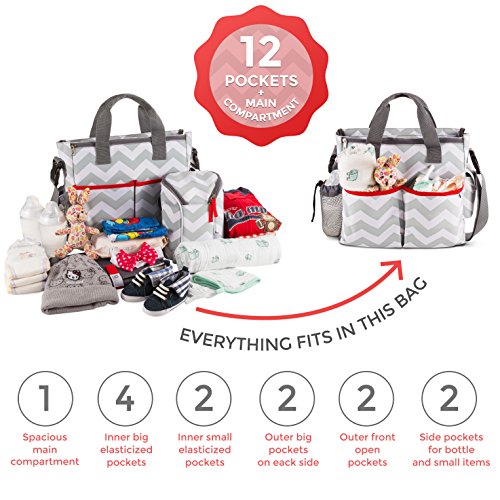 Baby Diaper Bag Chevron Grey- Bottle Bag & Changing Mat - 13 Pockets Premium Diaper Bag with Stroller Straps , Baby’s Organiser Weekender...