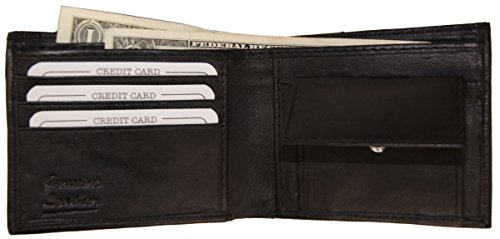 Improving Lifestyles® Leather Men Bifold Wallet Black Change Pocket FREE Organza Gift Bag SUN1116BK