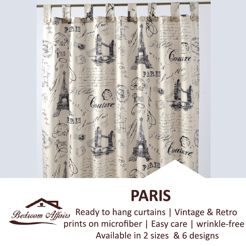 Ready Made Vintage Design Tap Top Curtain With Button * FreeMatching Tie Belt * Easy Care * Winkle Free Fabric * Hang YourCurtain In Second