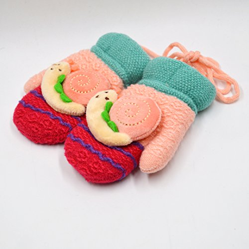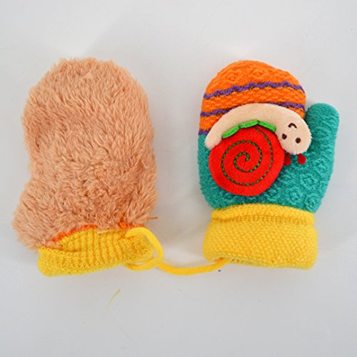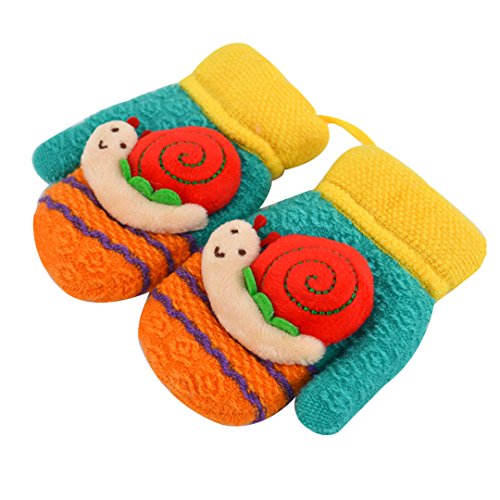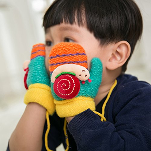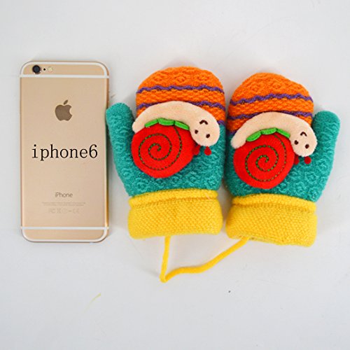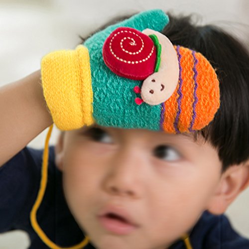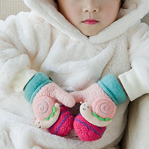 Colorful Snail Cashmere Jacquard Knit Cartoon Children Gloves Super soft texture with proper size to fit your baby's hands comfortably. Lovely snail design with knitting craftsmanship and gorgeous color. Keep your sweetheart warm and cute in this winter. With sling connected both hands gloves, convenient to maintain and wear.