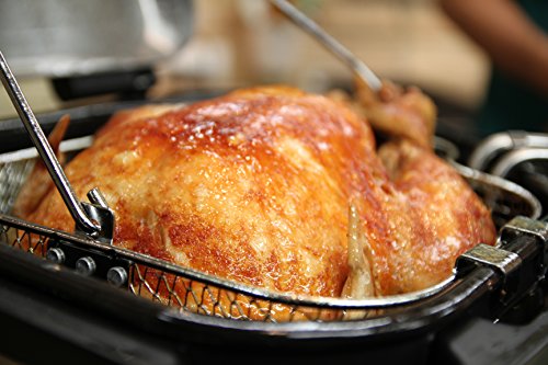 • Fries turkeys up to 14lbs. in the chrome-wire cooking basket with patented drain clip