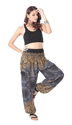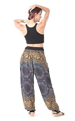 Title : CandyHusky Trident Mandala Baggy Genie Gypsy Hippie Boho Yoga Harem Pants (Black)